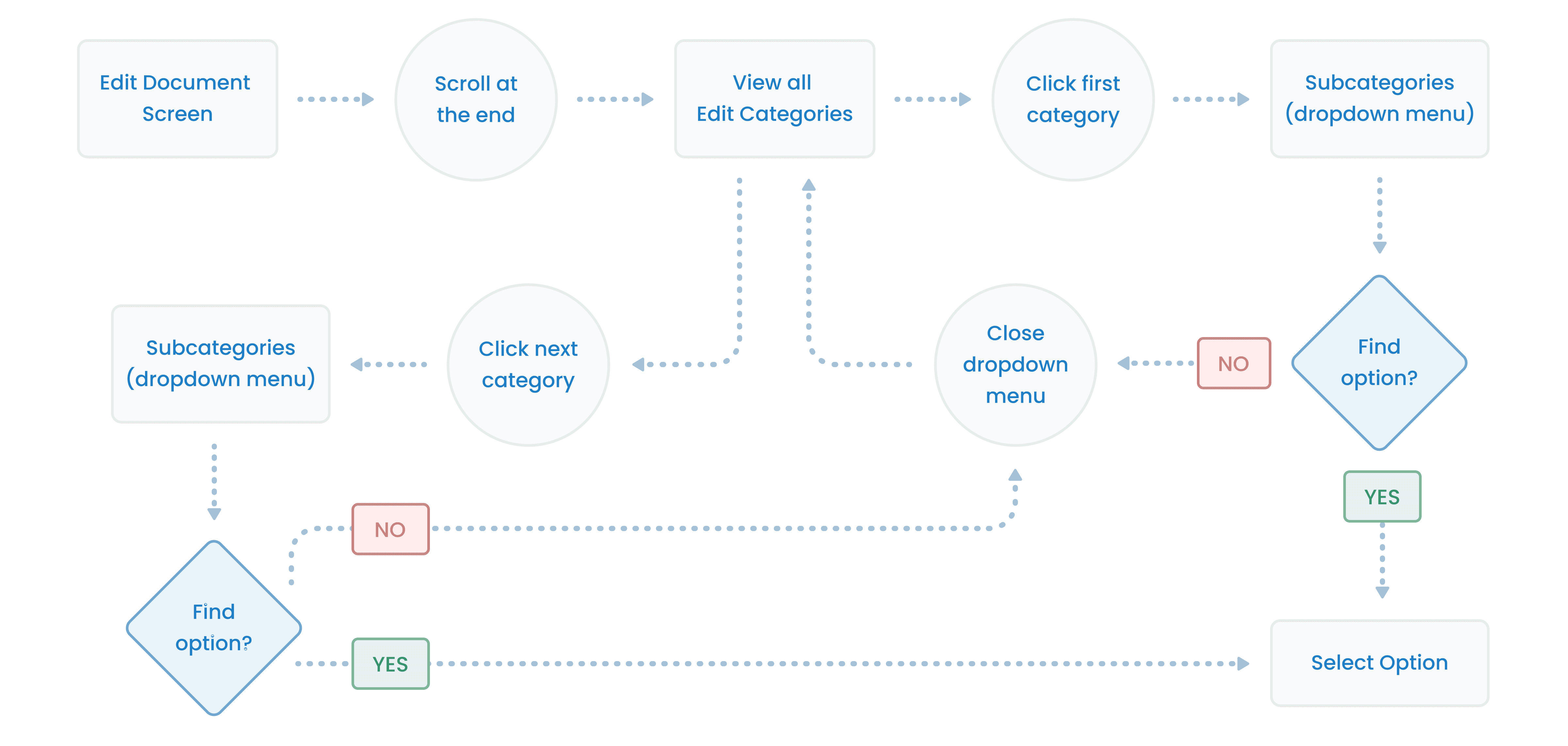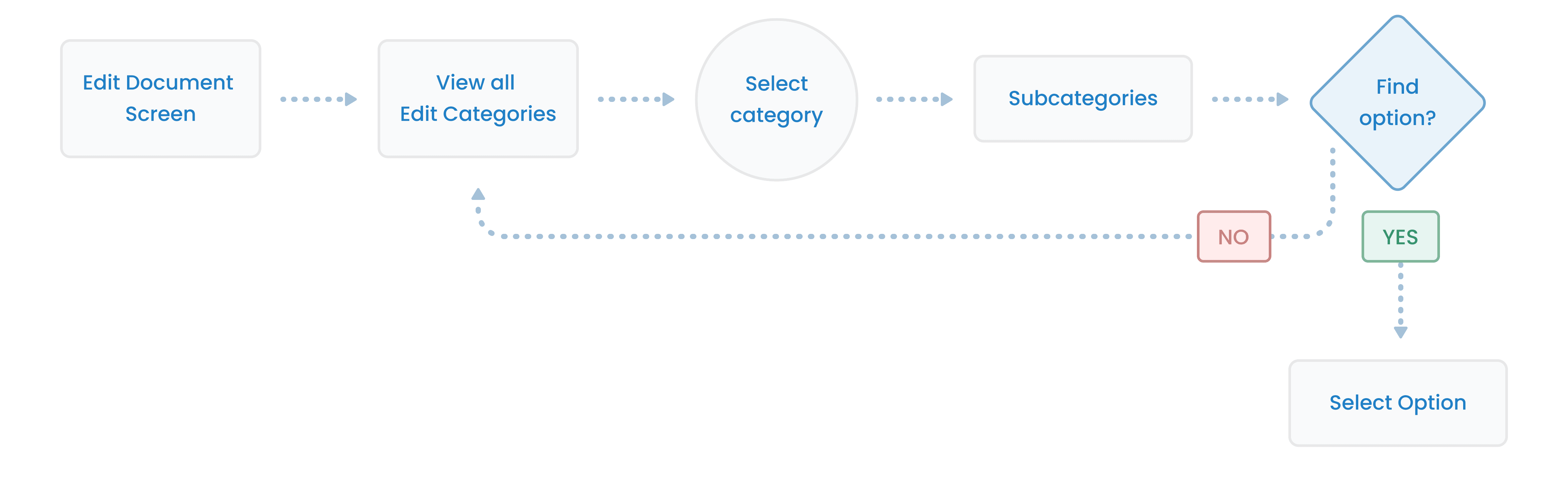 From the data I collected, I created a new, more streamlined user flow for the document editing process. This new flow served as the foundation for our redesign.