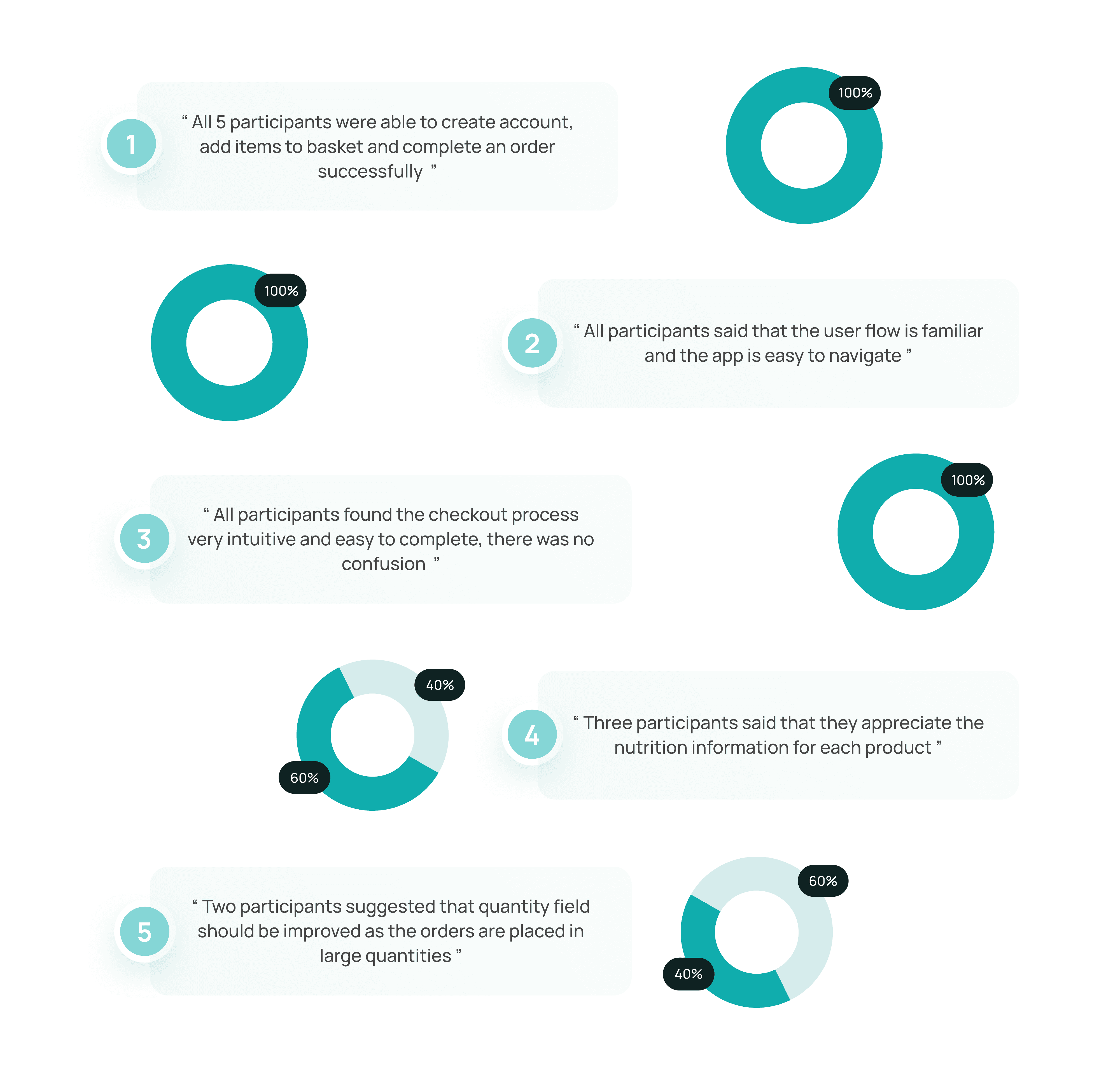 In this study, 5 participants complete the task of browsing, adding items into basket, multiplying the product's quantity and completing the order. Each participant completed a questionnaire about their experience. Here are the main conclusions: