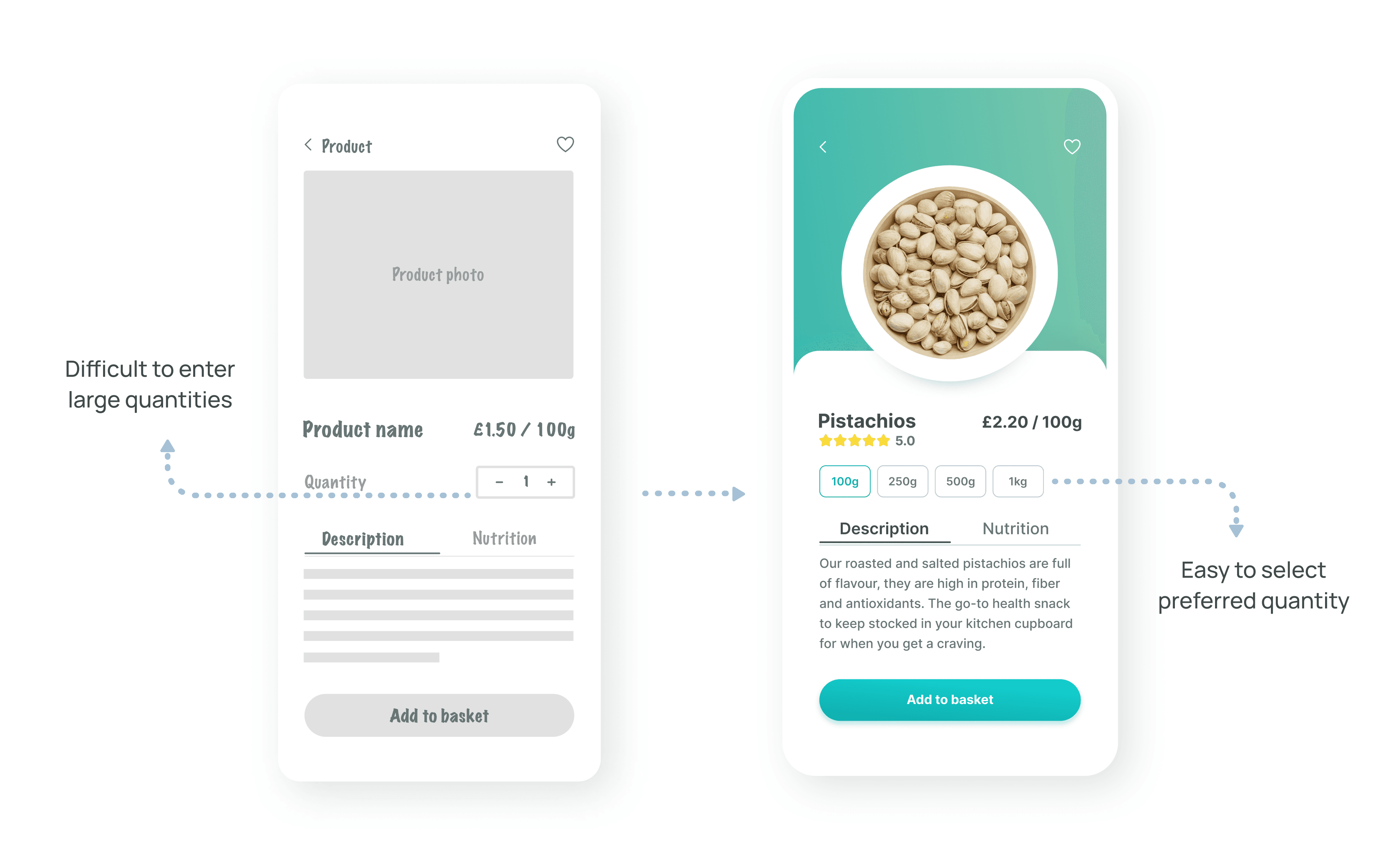 During testing, some of the users found that entering the quantity of each product can be difficult and time consuming as it needs to be in larger quantities. To make it easier, I changed the quantity field and standardized the quantites to be easier for selection.