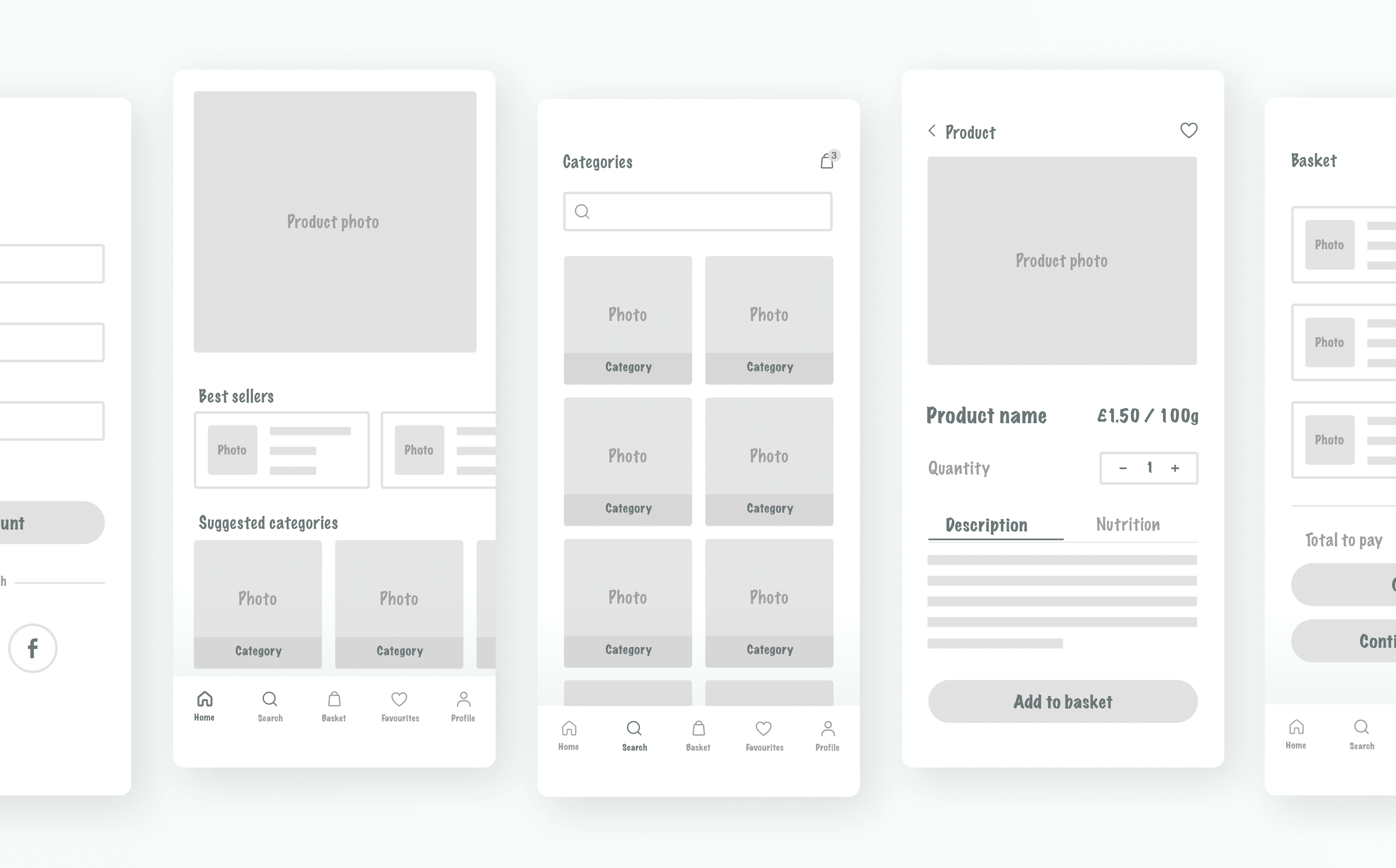 Next, I created low-fidelity wireframes and a prototype to focus on the basic layout and structure, helping me understand the user flow and functionality before diving into detailed designs. This step-by-step approach made it easier to spot issues early, save time and gather feedback on concepts.