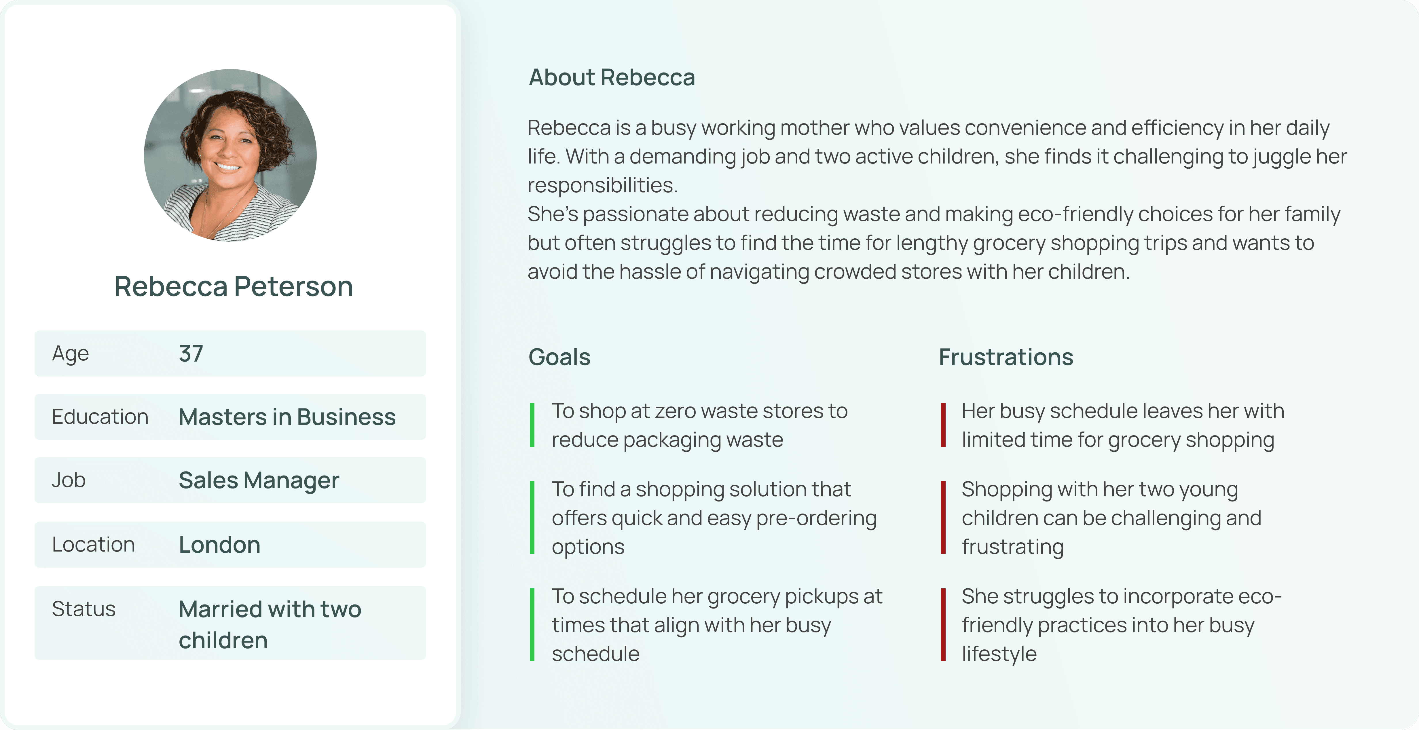 I used everything that I learned from my secondary research to create a user persona. This helped me understand the users' goals, needs, and frustrations, so I could design solutions that truly fit their needs and improve their experience.
